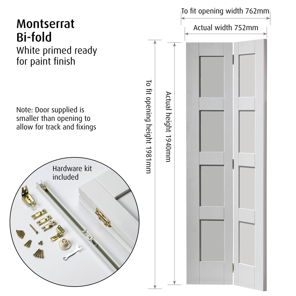 Easy to install into existing frames, our bi-fold doors are supplied ready hinged with pivots, brackets, a sliding track and full instructions MDF faced, with 8 recessed panels (4 per door leaf) Bi-fold interior doors in Shaker style Clean and modern door - perfect to mat... Read More