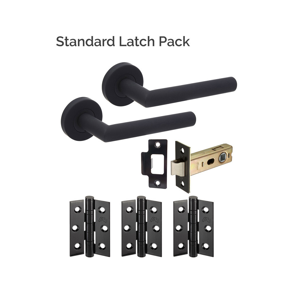 A stunning addition to any contemporary or urban industrial-styled doors, the JB Kind Phoenix Black Standard Handle Pack consists of all the necessary components to ensure a quick and hassle-free installation. As well as a pair of black powder-coated door handles with a chic soft touch finish, each pack comes with a tubular mortice latch, a colour-matching strike plate and three ball-bearing hinges.