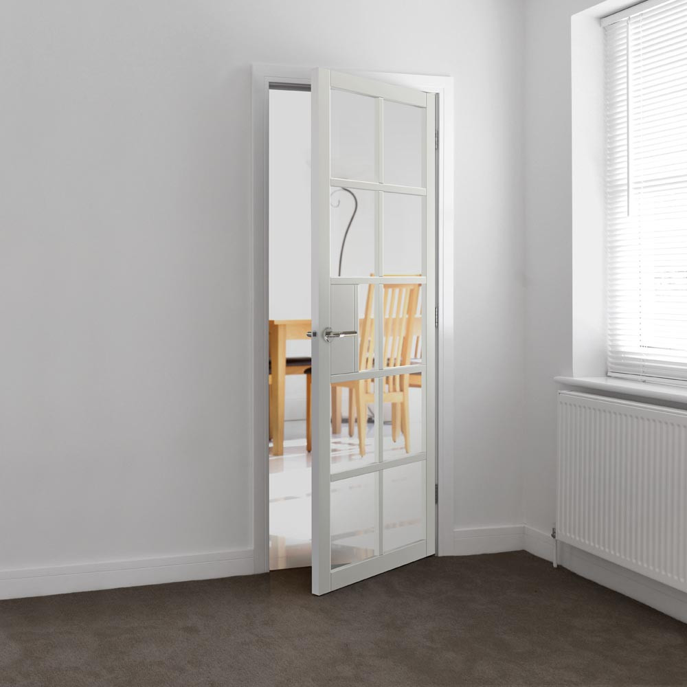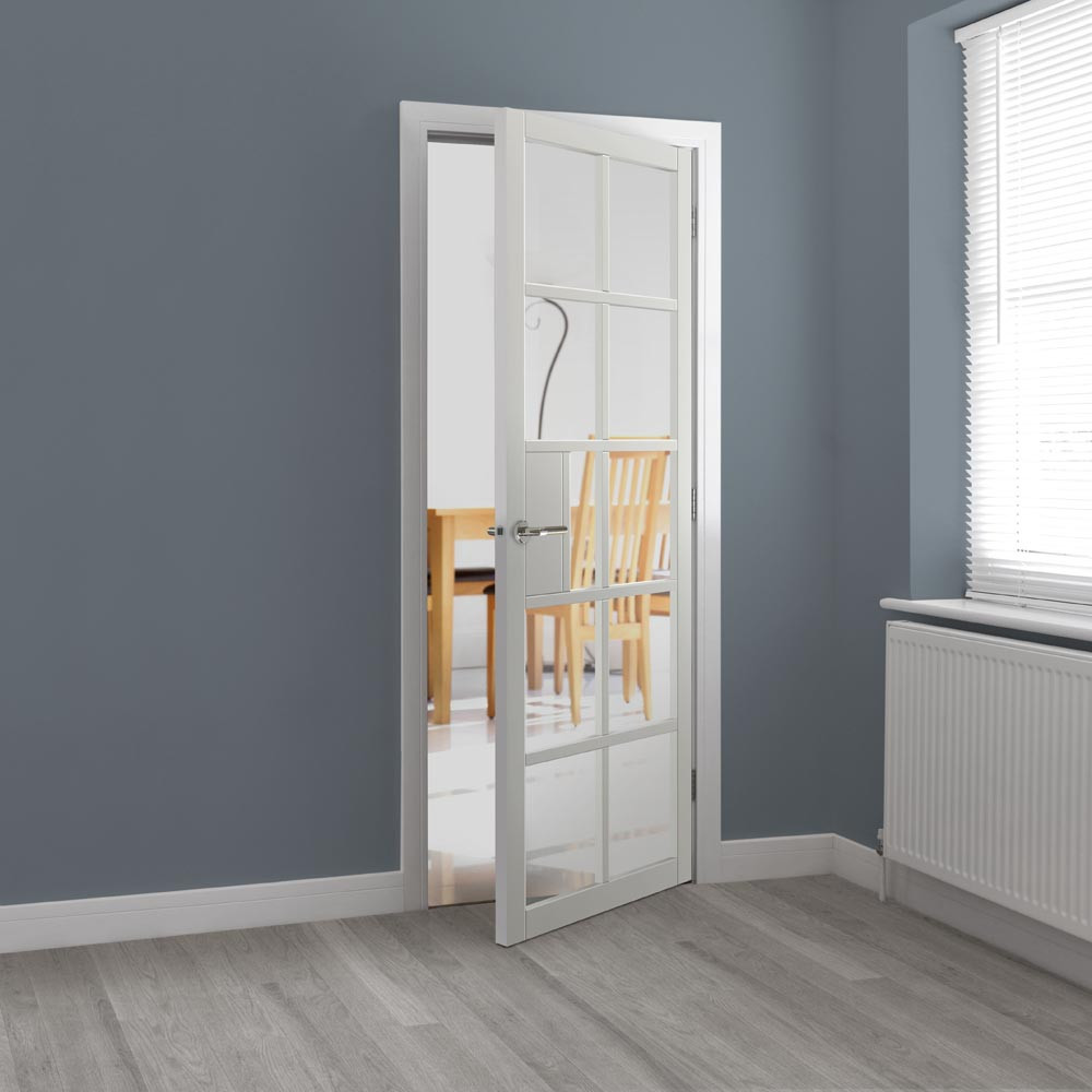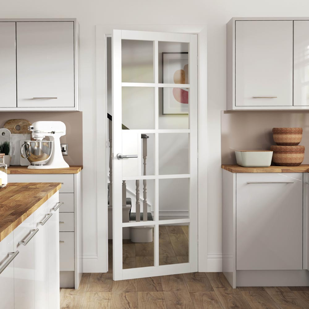 The Plaza Urban Industrial White Clear Glazed door will allow more light into your interior spaces and greatly improve visibility. This industrial style, urban white internal door will also add a sophisticated touch of class to your decor. Its 10 industrial style panels are fi... Read More