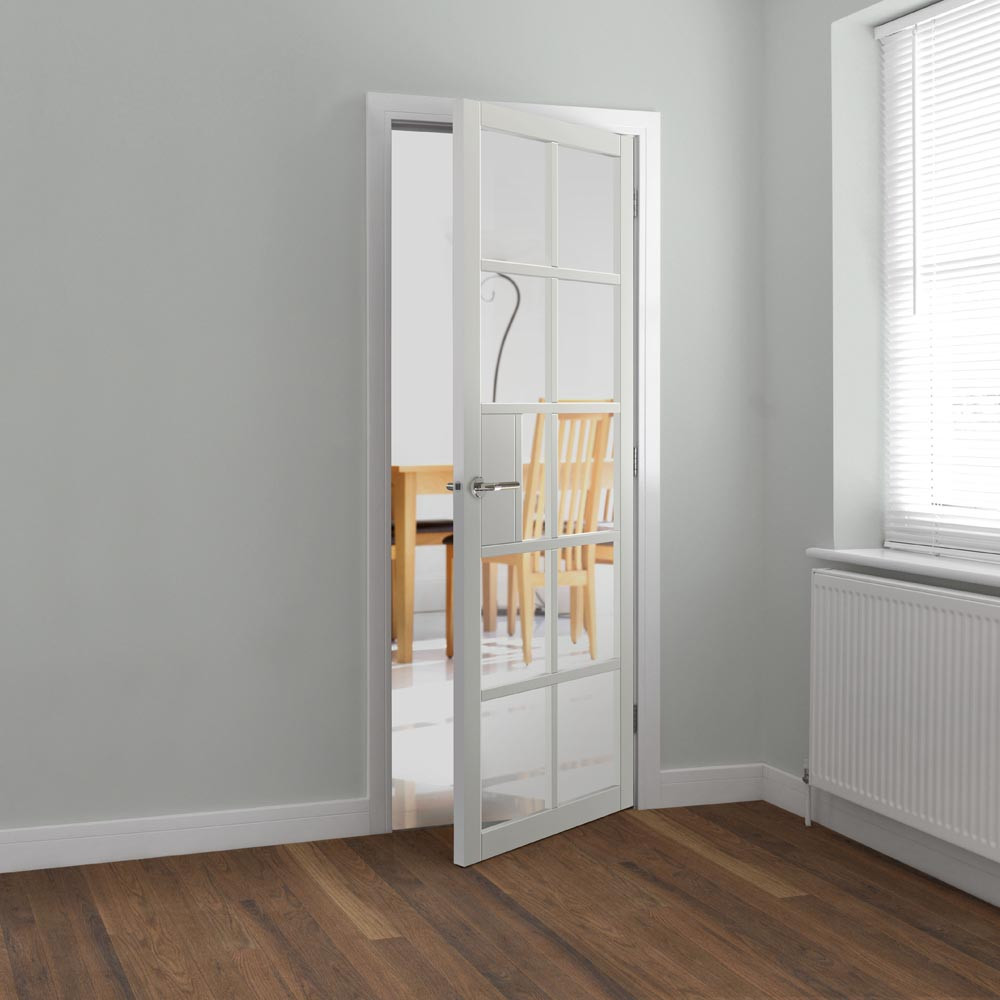 The smart white finish makes the JB Kind Plaza Urban White Clear Glazed door an easy fit with most décor themes. Without being ostentatious, this door will enhance your study, office or living room by providing more light and greater visibility.