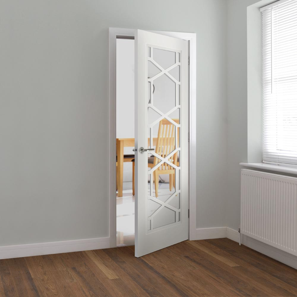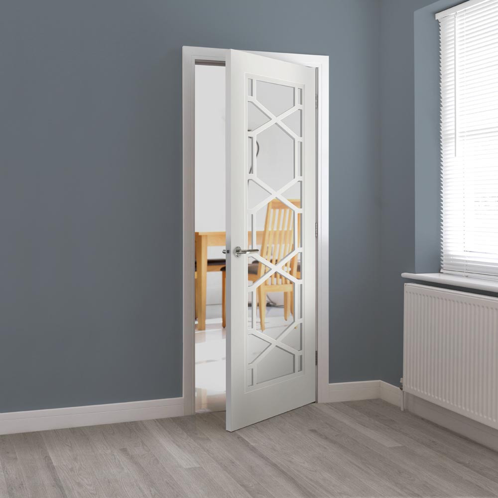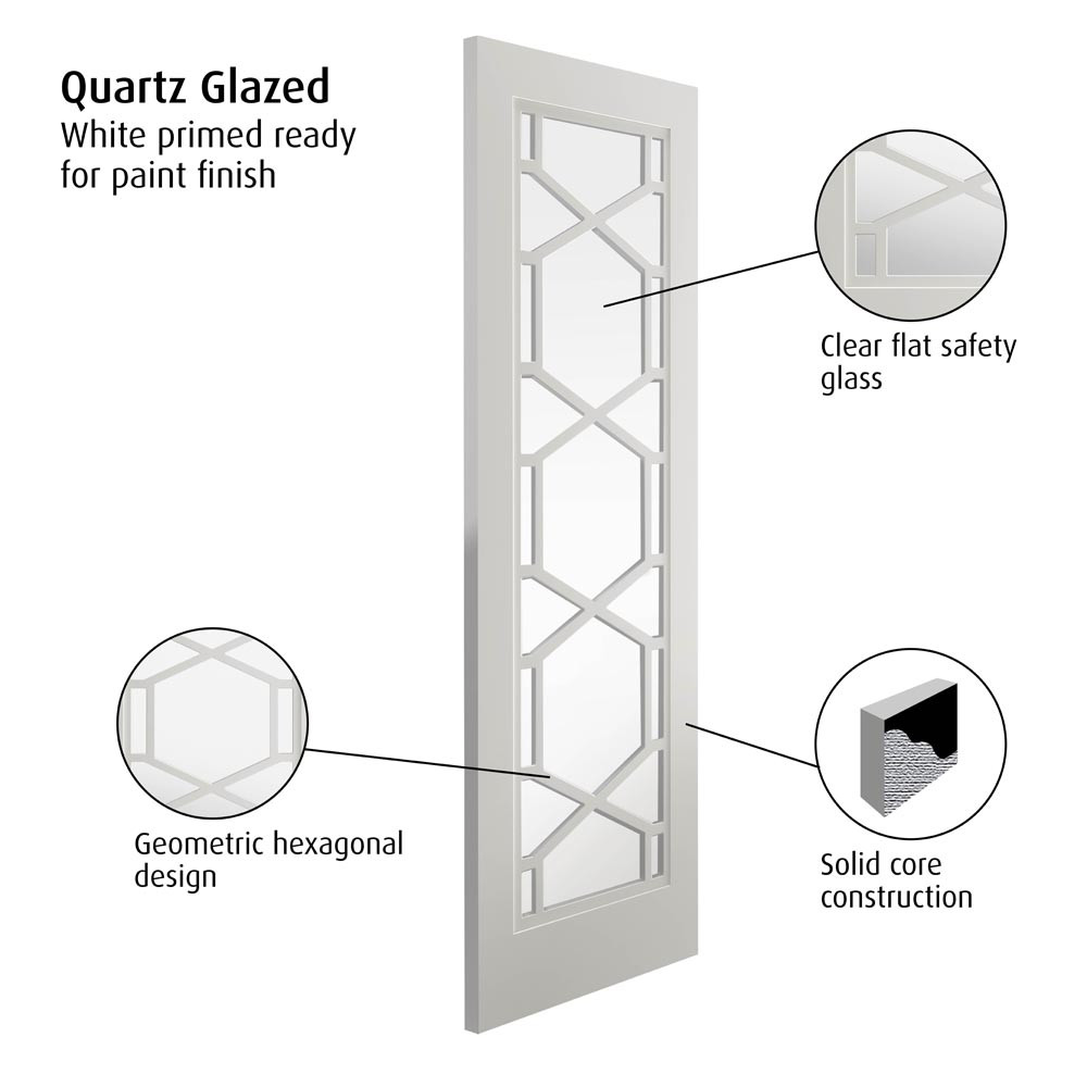 Features & Benefits: JB Kind Quartz Retro White Primed Clear Glass Internal Door - 1981mm x 762mm (78x30 inch)