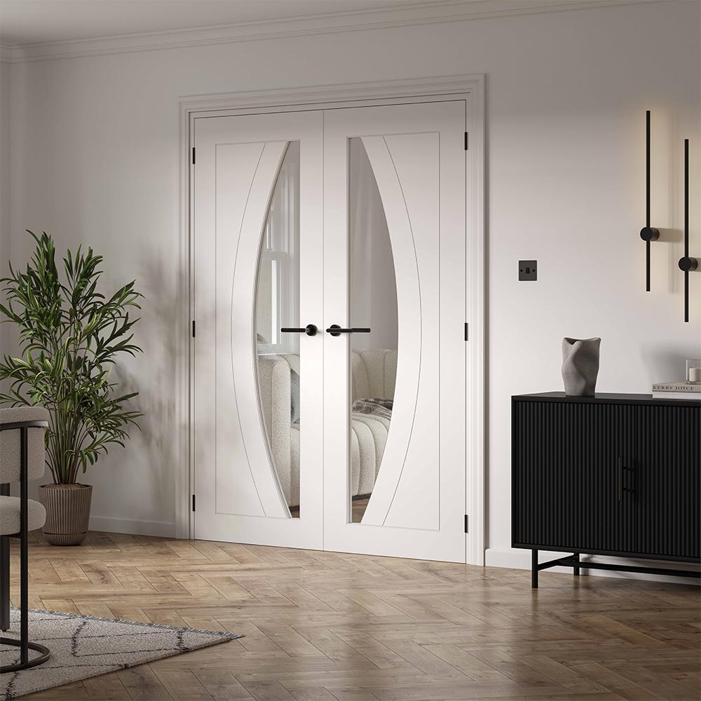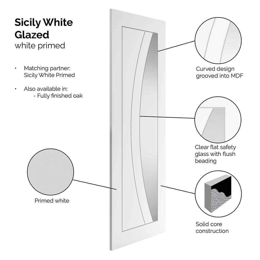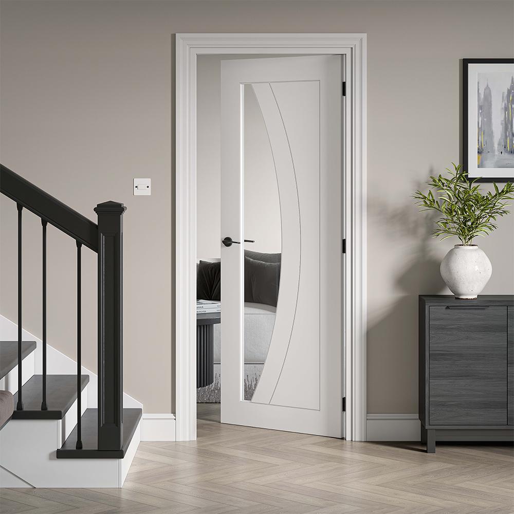 Features & Benefits: JB Kind Sicily Contemporary White Primed Clear Glass Internal Door