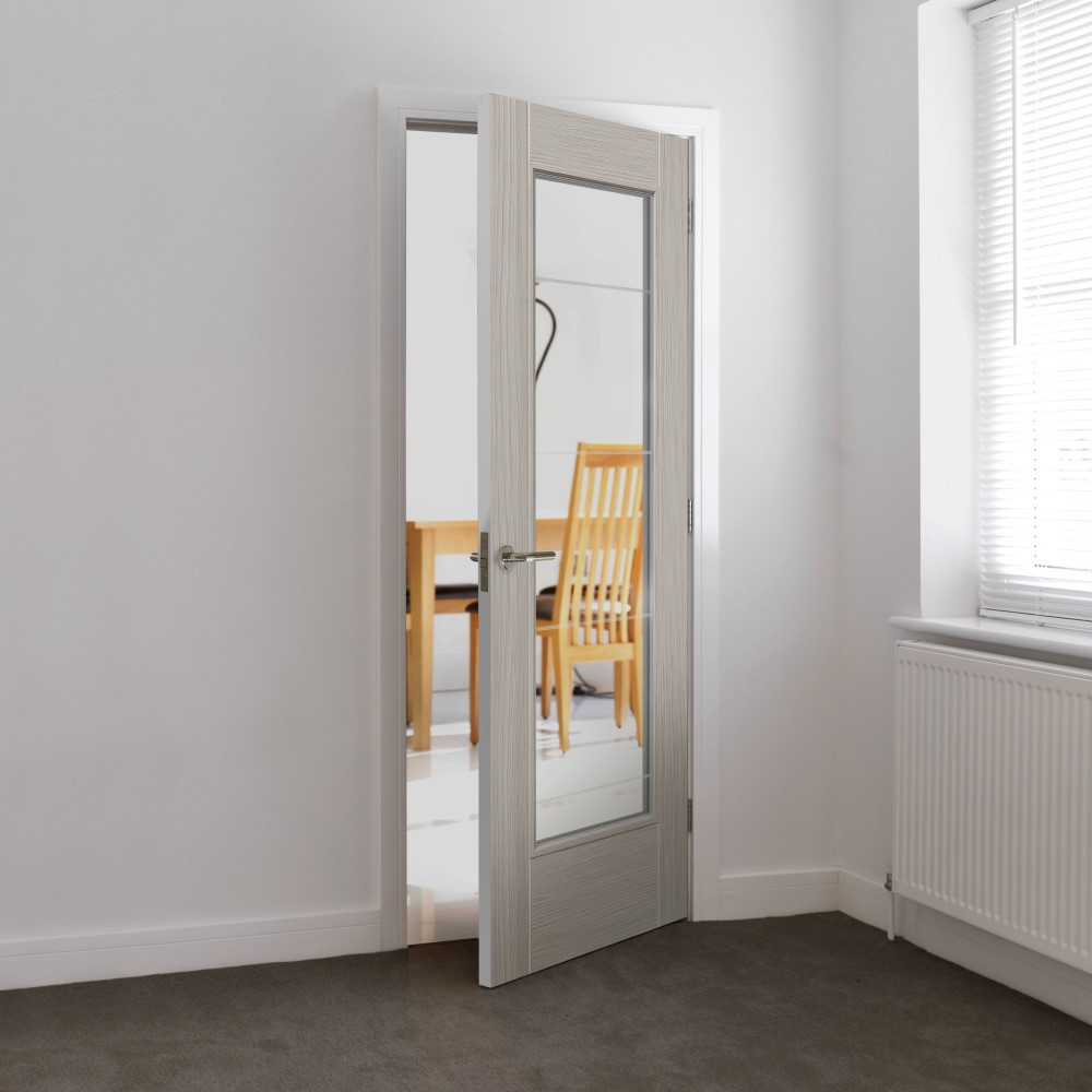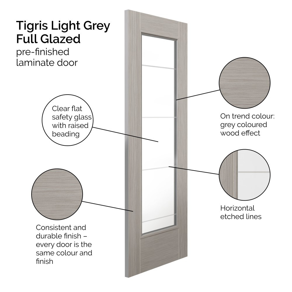 Features & Benefits: JB Kind Tigris Lava Light Grey Fully Finished Clear Glass Internal Door