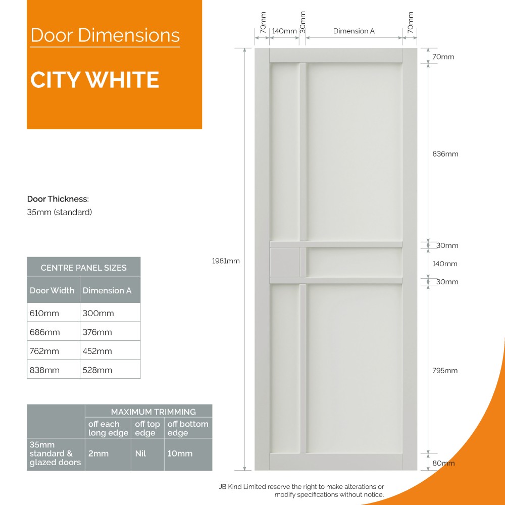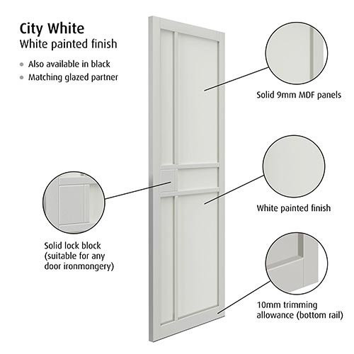 Features & Benefits: JB Kind Urban Industrial City Fully Finished White Internal Door - 1981mm x 762mm (78 inch x 30 inch)