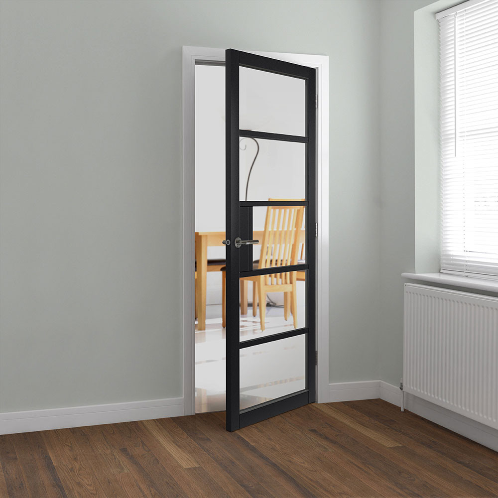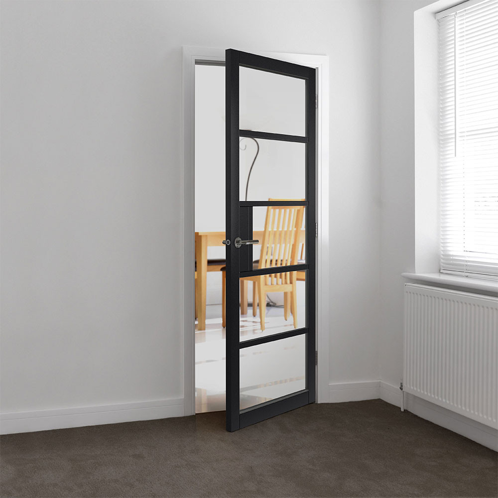 This internal door comes fully glazed with clear glazing. Clear glazing provides an unobscured view between rooms and allows ample natural light to pass through.