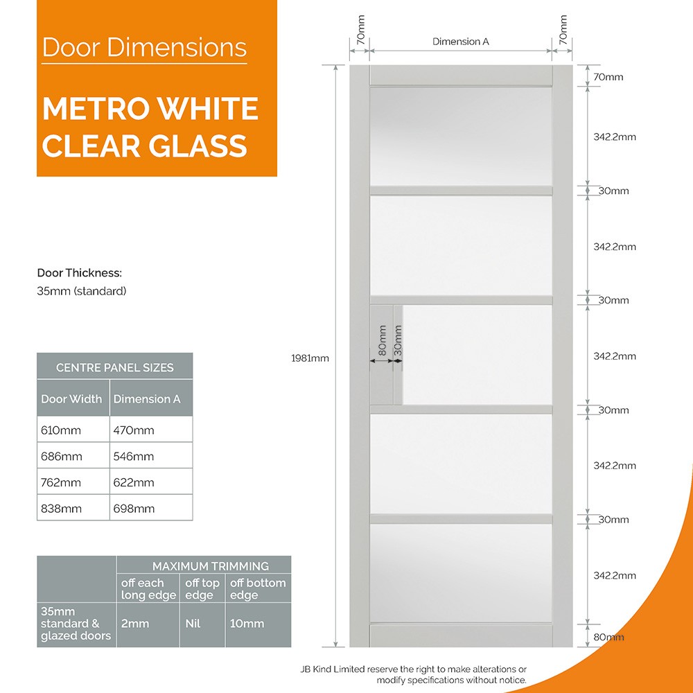 This internal door comes fully glazed with clear glazing. Clear glazing provides an unobscured view between rooms and allows ample natural light to pass through.