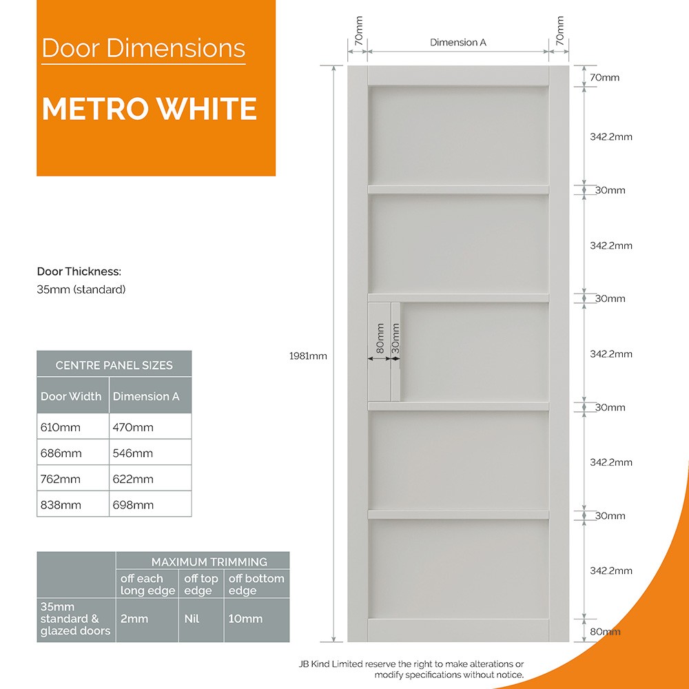 Features & Benefits: JB Kind Urban Industrial Metro Fully Finished White Internal Door - 1981mm x 610mm (78 inch x 24 inch)