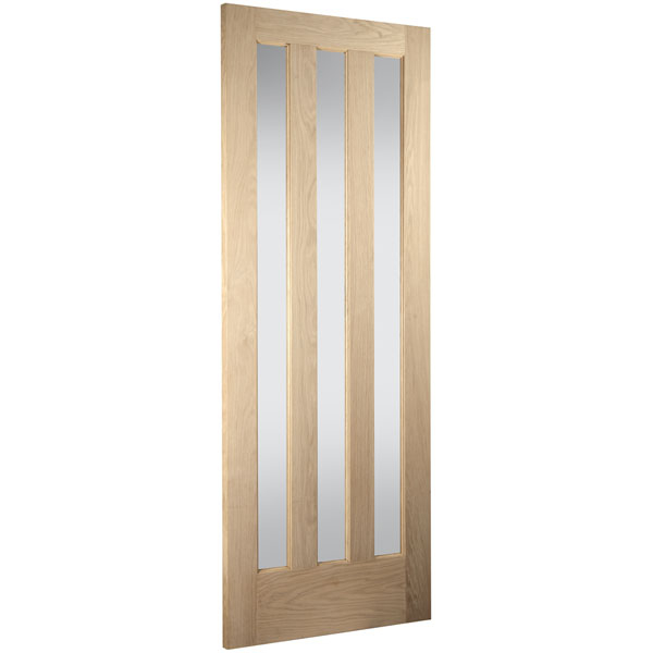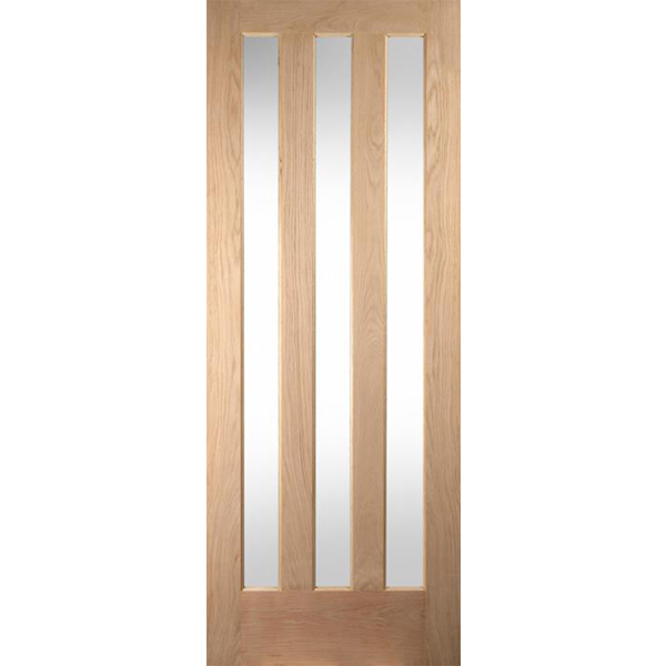 The Aston range of internal doors from JELD-WEN features three vertical panels that create a minimalist, streamlined design. This obscure glazed oak door is delivered unfinished. The contemporary style of this door makes it a perfect choice for on-trend interiors.