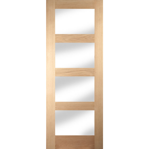 Brighten up your home the shaker way with this classic, clear glazed door from JELD-WEN. Featuring four square clear-glazed panels set in the shaker style that we all know and love, this door has an instant calming effect! It's a great tie-in with your minimalist look, and love of clean lines. But with its natural oak colour, it adds an organic warmth to any room, giving it that Scandi appeal.