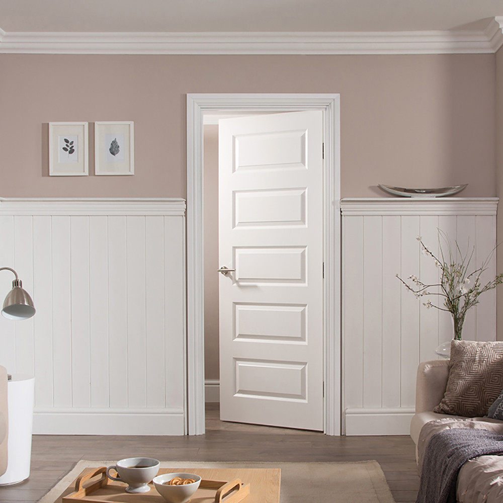 Features & Benefits: DISCON - JELD-WEN Rockport 5 Panel White Primed Internal Door - 1981mm x 610mm (78 inch x 24 inch)