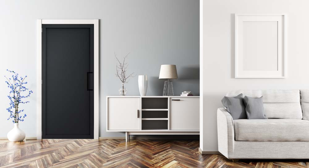 Features & Benefits: DISCON - JELD-WEN Slim-line Urban 1 Panel Fully Finished Black Unglazed Internal Door
