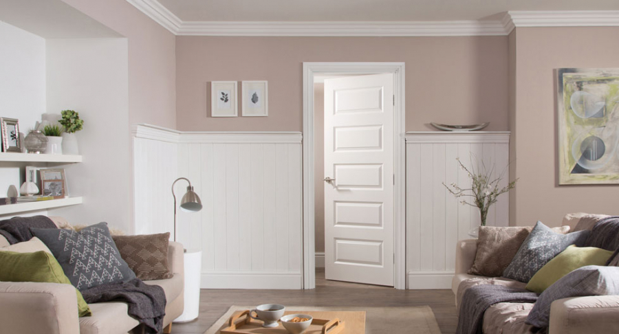 • Why waste time painting doors when you can buy one pre-painted? With this 5 panel smooth moulded door you can do just that as each door is supplied finished in a selection of popular colours.