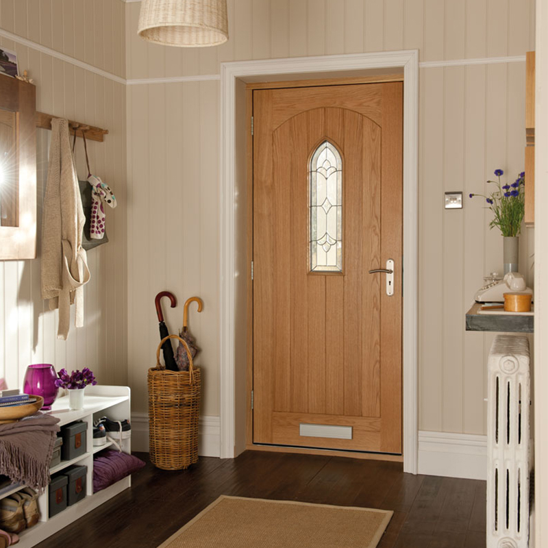 Make a grand entrance with the striking Gothic door design from the Oregon exterior door range. Arched, decorative glass certainly makes this door stand out from the rest. Door only supplied, frame, hardware and fixings to be purchased separately.
