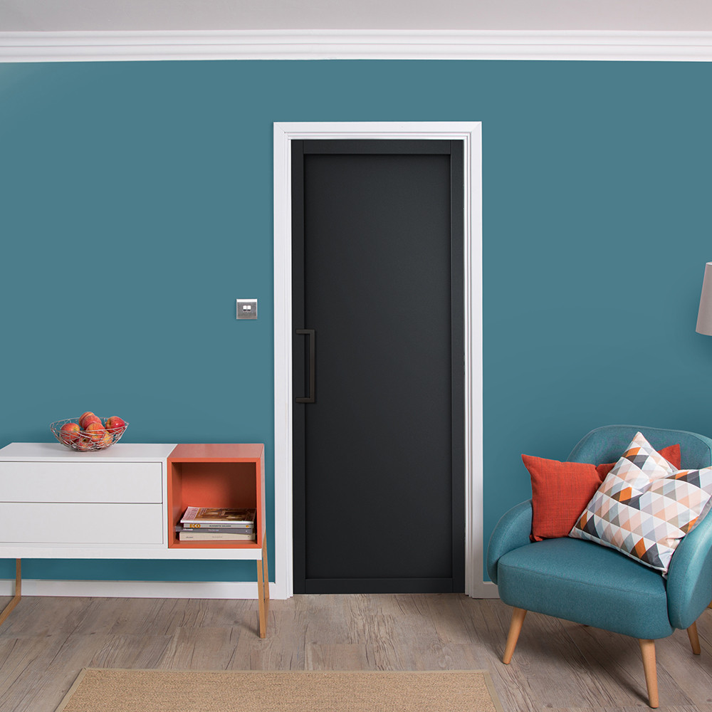 The Slim-Line range of internal doors from JELD-WEN features modern lines and create a bold statement. This black door is delivered fully finished. The urban style of this door makes it a perfect option for on-trend interiors.
