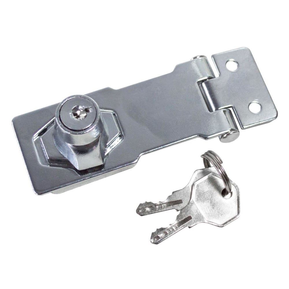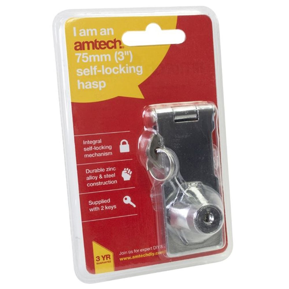 MATERIAL: SteelTYPE:Hasp and stapleSTYLE:Key locking hasp and stapleFINISH: Zinc AlloyFIXINGS:Supplied with two keys and screwsClick here to view the entire Amtech DIY rangeDescription This is a light duty locking hasp recommended for general use and low security applications ... Read More