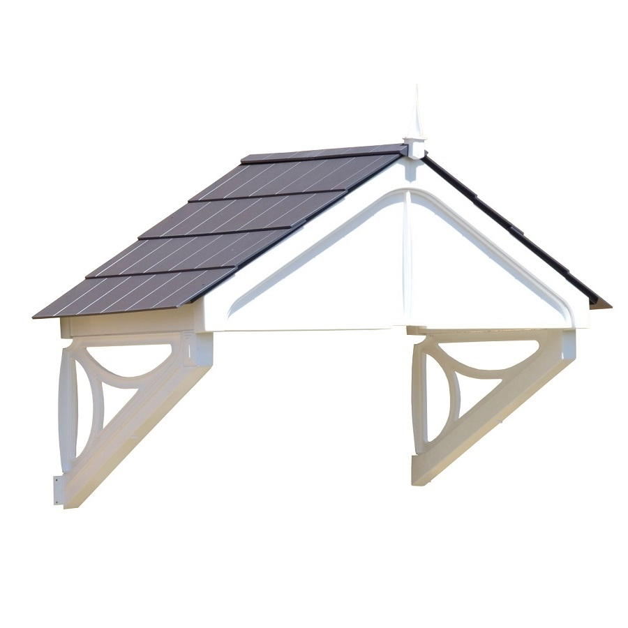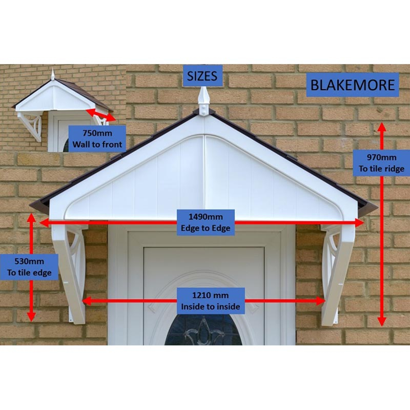 The Blakemore Apex Canopy design incorporates a solid front panel to the Apex and the side gables feature a Victorian cast decorative bracket feature. The Roof is finished with a small finial to add that final touch.  Available with a choice of colour scheme options.