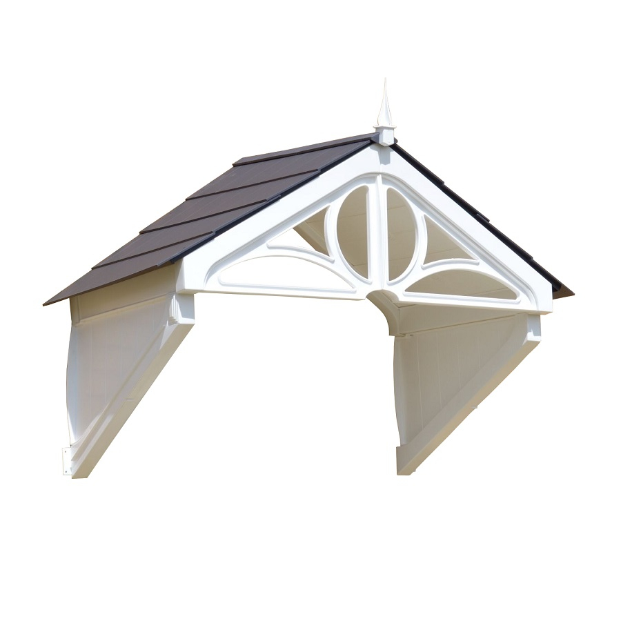 The Dorchester apex canopy is similar in design to the Clarendon but features a larger front panel. A modern twist on a classic Victorian style with solid side panels and open fronted feature with distinctive symmetrical design. Topped with a finial to the front aspect.