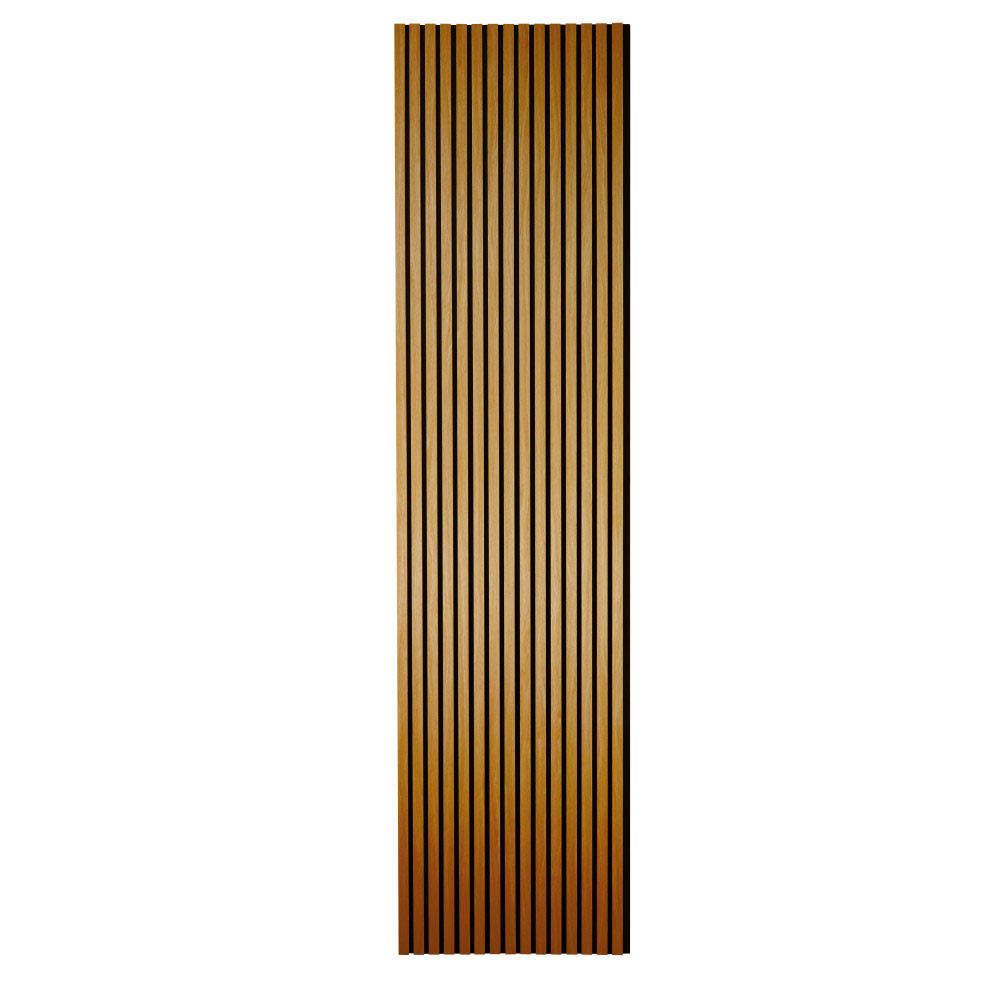 With dimensions of 600mm x 2400mm and covering 1.44m², these panels offer versatility in application, whether installed horizontally or vertically, to suit your design preferences. Each fully wrapped 13mm deep x 27mm wide MDF slat displays the wood effect veneer for a natural décor finish.