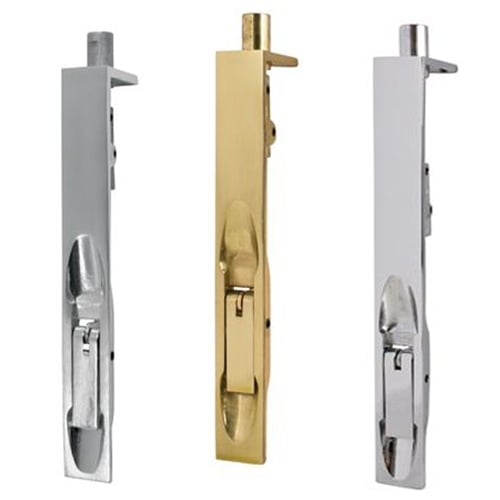 • A slide action flush bolt used for fitting to a door to lock it securely