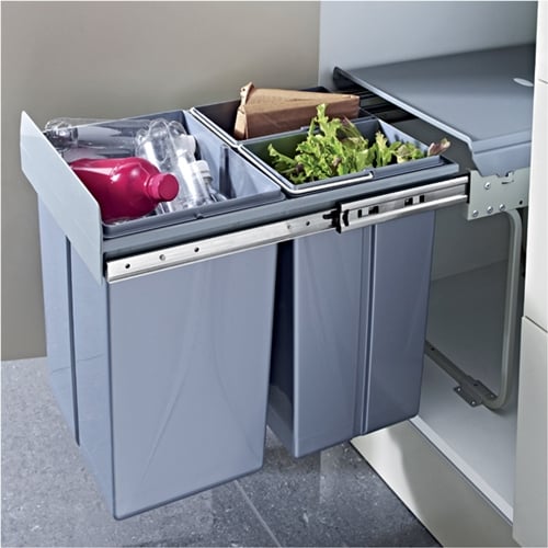 • Soft closing pull out system means the bins can be easily slid out for use - simply slide the containers from the cabinet using the handles attached whilst the lid remains inside
