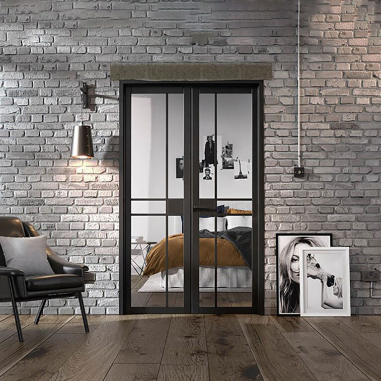 Features & Benefits: LPD Greenwich W4 Black Fully Finished Light Clear Glass Internal Door Pair - 2031mm x 1246mm (80 inch x 49 inch)