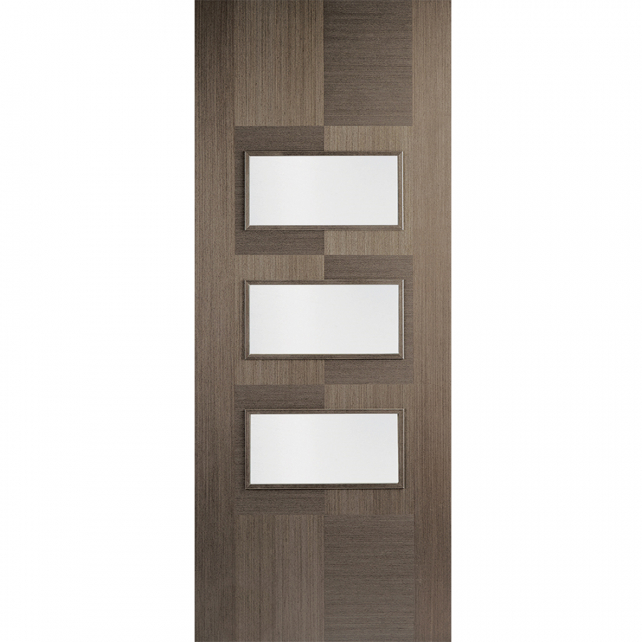 The Apollo range of doors from LPD comes in a chocolate grey colour and has a checkerboard wood grain pattern. This clear glazed grey door is delivered fully finished. The contemporary style of this door makes it a perfect choice for on-trend interiors.