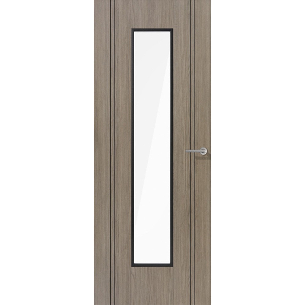 In fully finished light grey, this laminate internal door is ready to hang. Featuring solid black inlays down the edges which enhances the contemporary look. The vertical clear glazed panel will allow natural light to flow throughout your home, making rooms seem brighter. It also comes fully finished to help make for an easy installation.