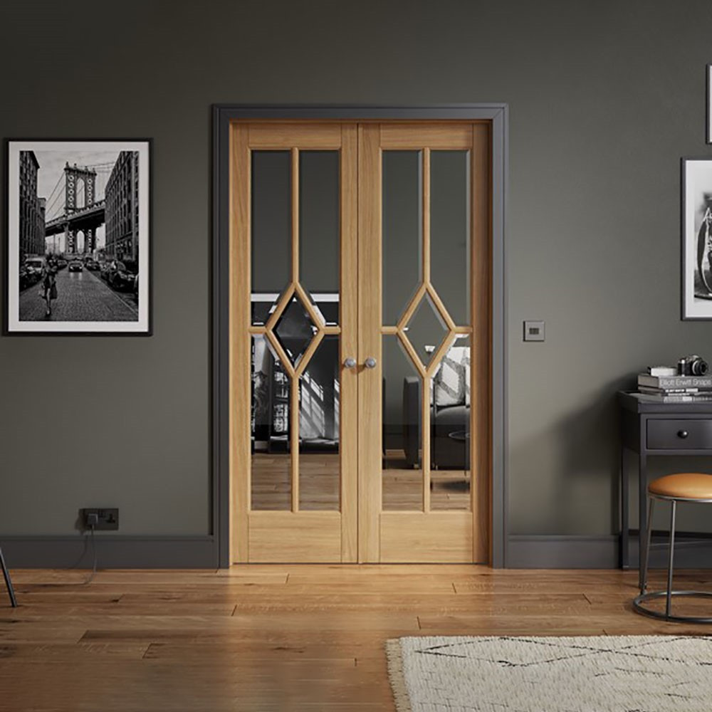 Features & Benefits: LPD Reims W4 Oak Fully Finished Clear Glass Bevelled Internal Door Room Divider - 2031mm x 1246mm (80 inch x 49 inch)