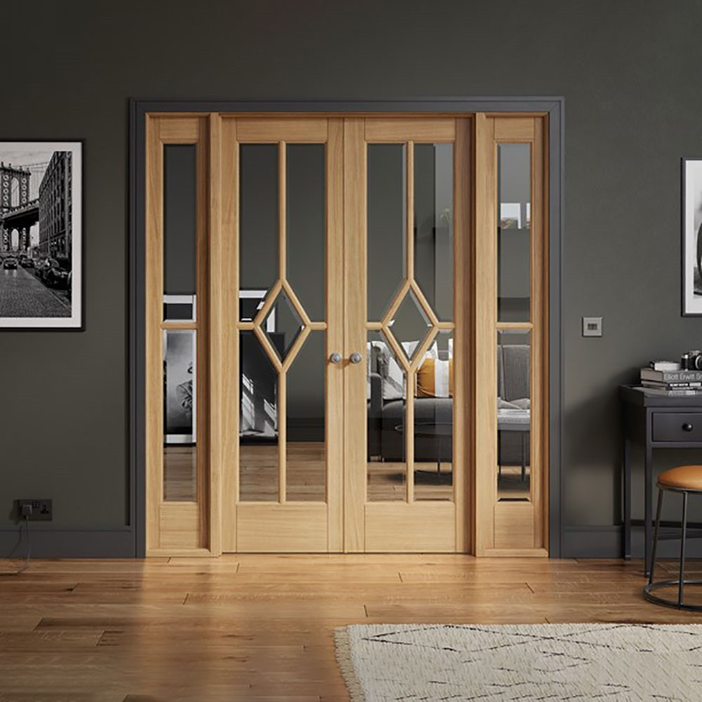 Features & Benefits: LPD Reims W6 Oak Fully Finished Clear Glass Bevelled Internal Door Room Divider - 2031mm x 1904mm (80 inch x 75 inch)