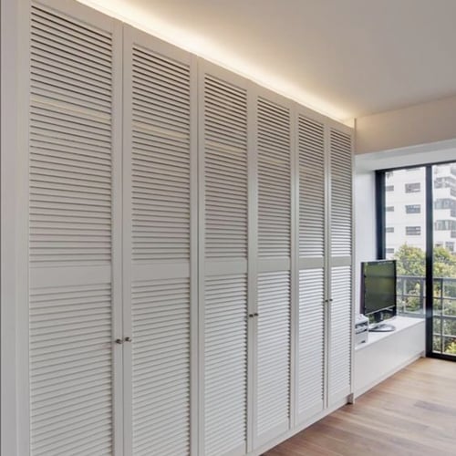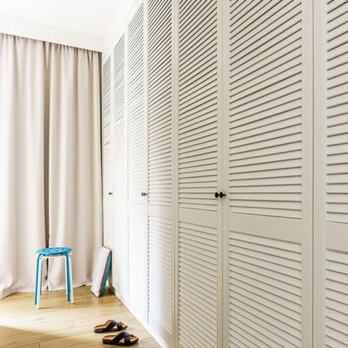 MATERIAL:Solid laminated pineTYPE:Cabinet and Cupboard DoorsSTYLE:Open Slatted LouvreFINISH:White Painted   Description   Sold individually Easy to fit - white painted Slats are fixed open with a 5mm vent gap Ideal for kitchen cupboards, wardrobes, airing an... Read More