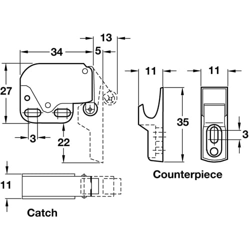 MATERIAL: Steel catch & plastic counter-piece