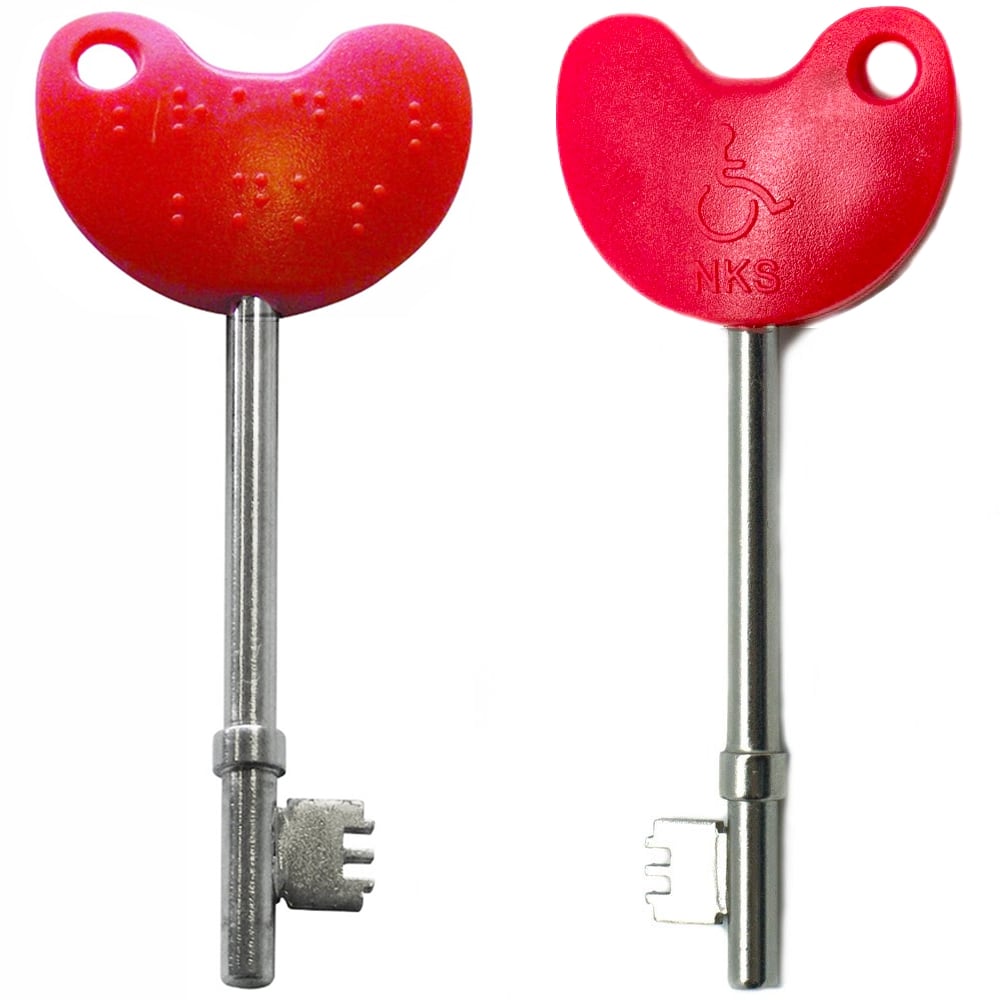 MATERIAL:Steel key with a plastic key turnTYPE:NKS Radar disabled toilet access keyFINISH:Silver key with a red turnADDITIONAL FEATURES:Braille inscriptionDescription The National Key Scheme (NKS) offers disabled people independent access to locked public toilets with disable... Read More