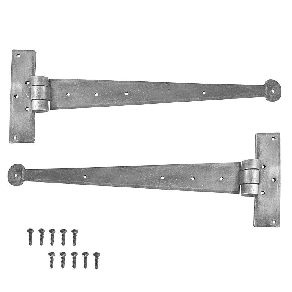 This pair of premium range heavyweight hand forged iron tee hinges are available in a choice of two different overall lengths. Suitable for doors, sheds, gates and outhouse doors.