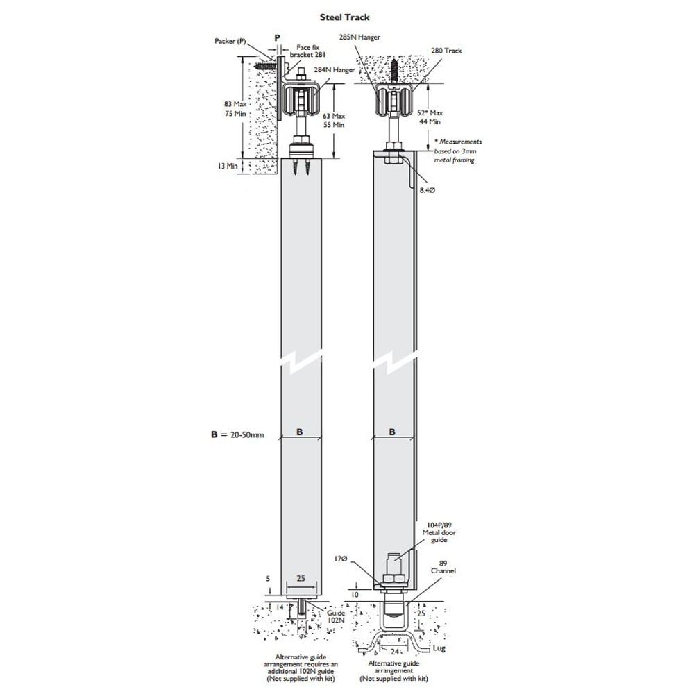 • Flexible fixing options - the track may be fixed direct to the underside of the lintel (single or multiple runs) or face fixed with bracket