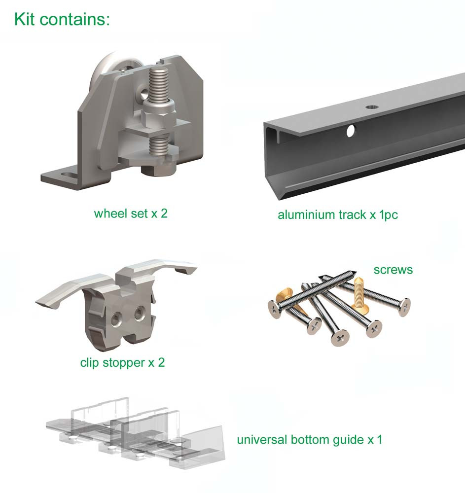 Also included in the system is a universal clear polycarbonate bottom guide which helps to guide your sliding door across the track. Once fully installed, the guide will be near invisible, meaning it will not impact the overall look of your sliding door.