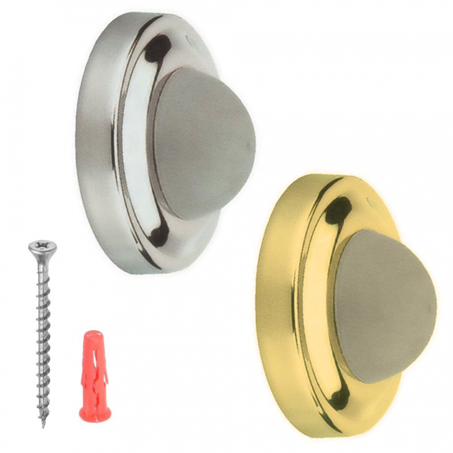 MATERIAL: Steel or brassTYPE: Door stopSTYLE: Wall bumperFINISH: Satin stainless steel or brassFIXINGS: 1 x 45mm wood screw included per bumper Description Fitted to the wall to help cushion door closure and prevent damages - Protects the wall, doo... Read More