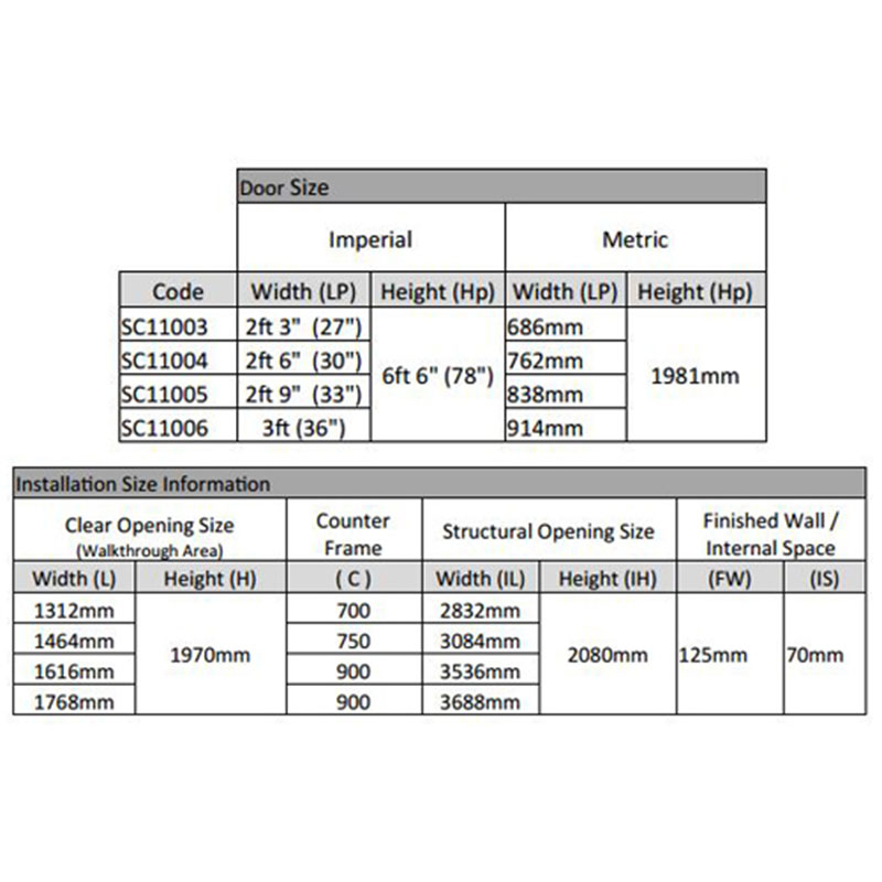 Metric 826mm x 2040mm System: