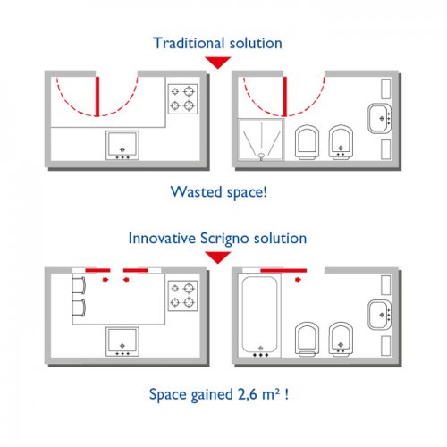 The Scrigno sliding door system utilises a pre-fabricated metal cassette frame system to create a double pocket door. This modern system allows two opposite internal doors to slide into a pocket in the wall cavity, creating a contemporary feature point for your home as well as gaining vital extra space.