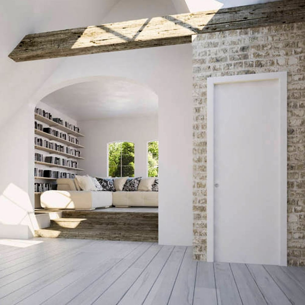 This Scrigno sliding door system utilises a pre-fabricated metal cassetee frame system to create a single pocket door. This modern system allows an internal door to slide into a pocket in the wall cavity, creating a contemporary feature point for your home as well as gaining vital extra space.