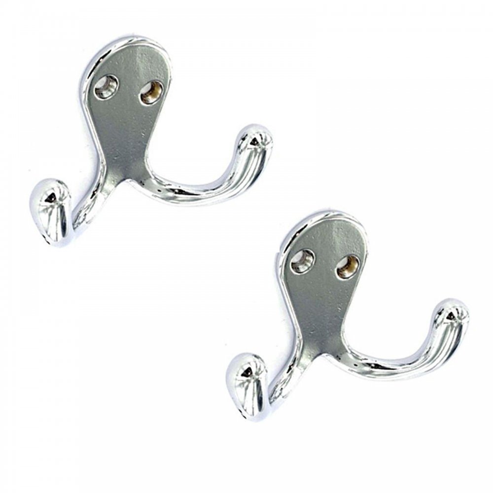 Securit 2 x Traditional Double Coat Door Hooks (Chrome)