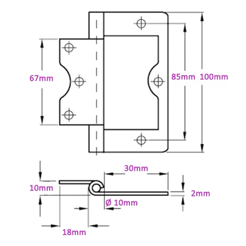 HEIGHT OF SMALL HINGE SECTION: 67mm