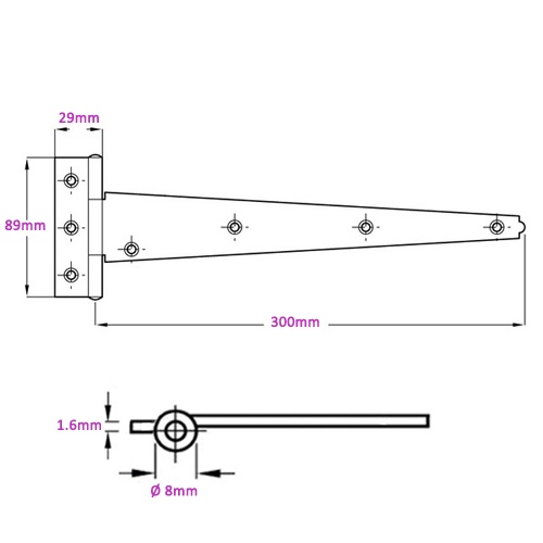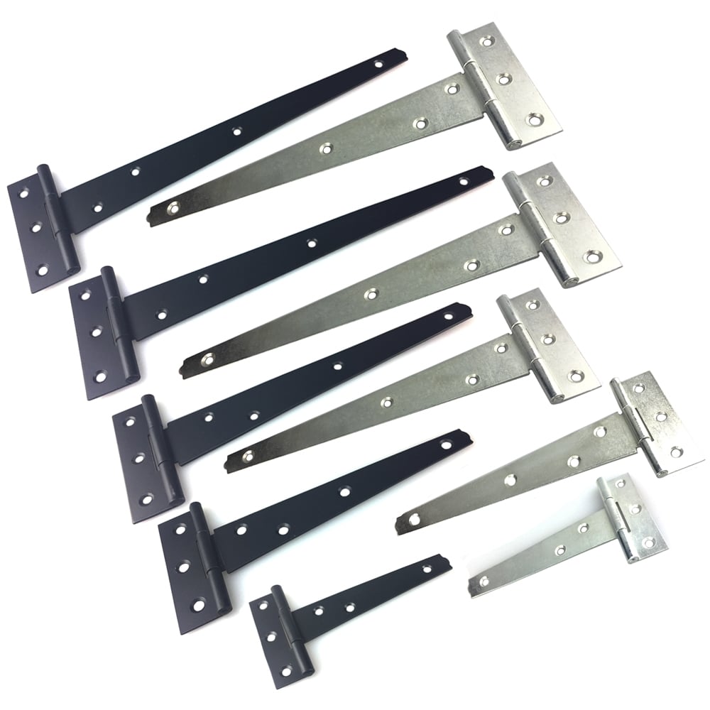 This pair of light duty tee strap hinges are available in a choice of five different sizes and two finishes. Suitable for sheds, gates, outhouse doors.