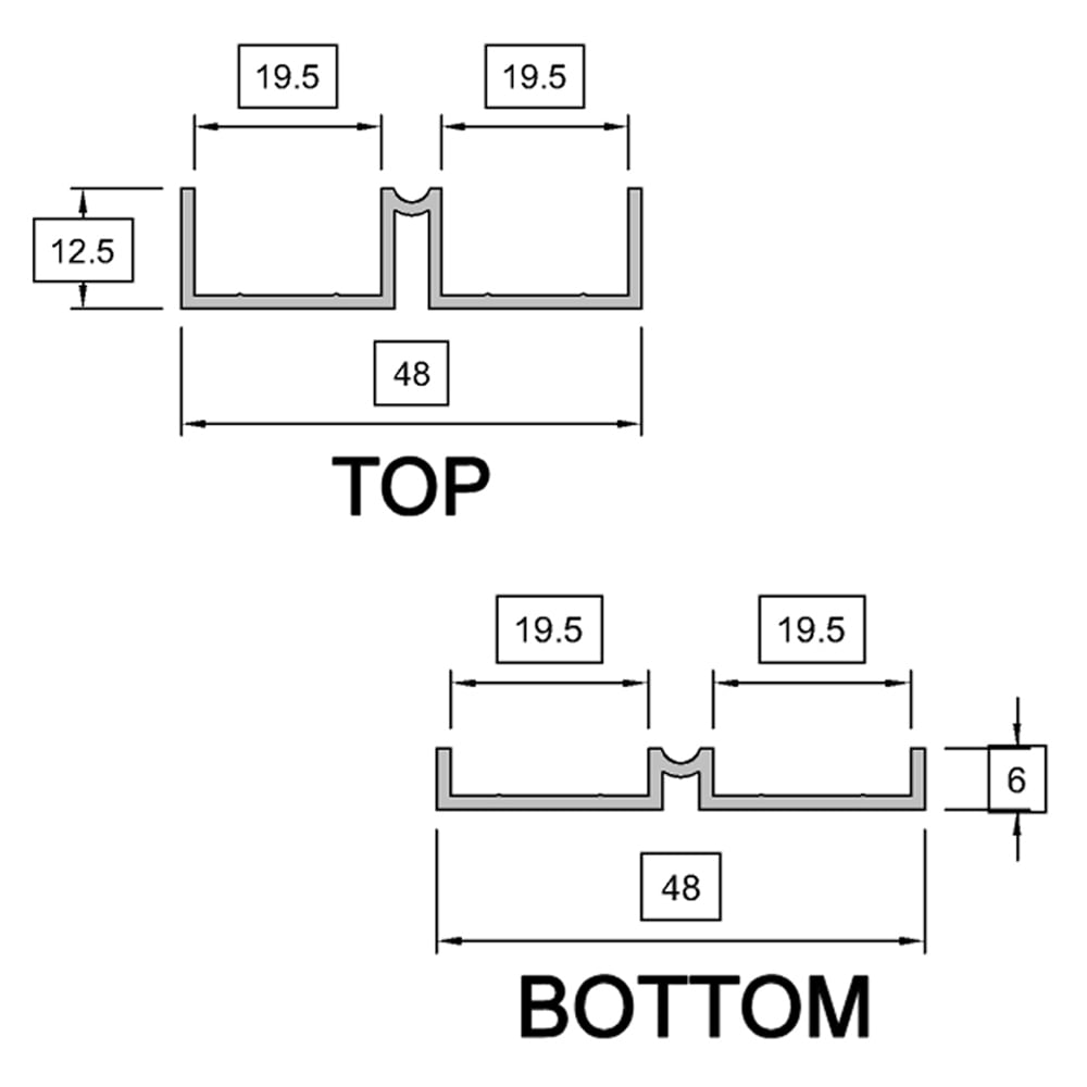 • The top channel is deeper than the bottom to allow doors to be lifted out for cleaning