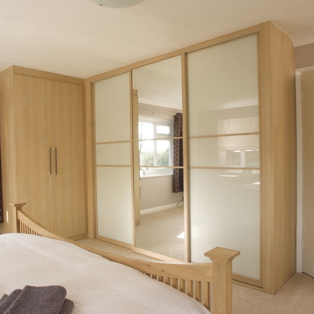 • Doors are allowed to bypass each other smoothly carried by nylon wheels on a strong aluminium track