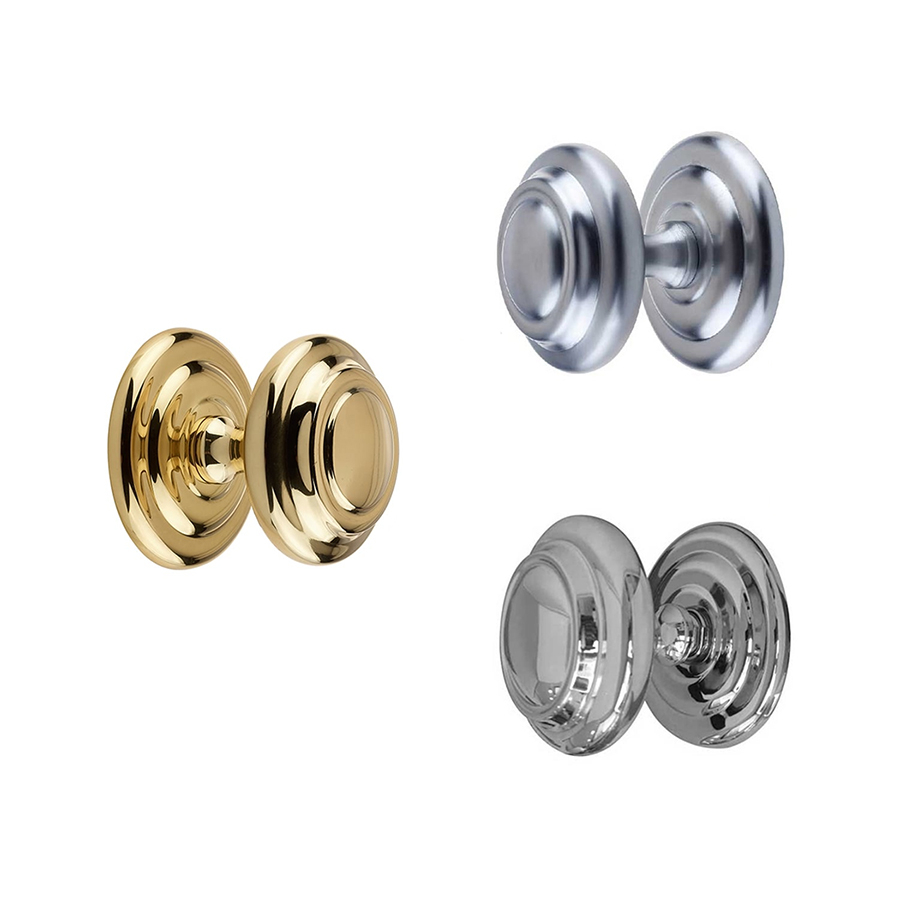 Material: Solid brass Type: Door knob pull Style: Decorative centre door knob Finish: Polished chrome, satin chrome and polished brass finishes available Fixings: Required fixings included These top quality centre door knobs are “pull knobs”, not &ldq... Read More