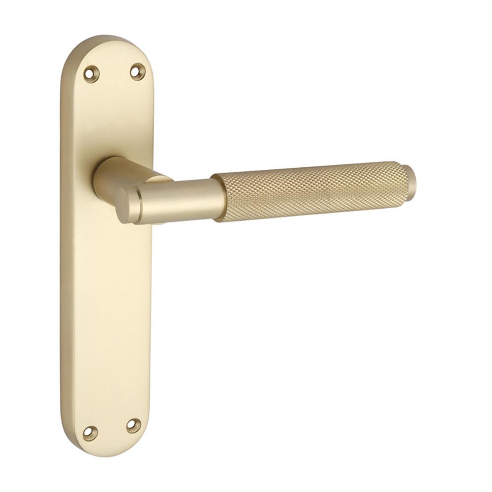 Features & Benefits: SpiraBrass Connaught Knurled Latch Lever on Backplate Door Handle - Satin Brass