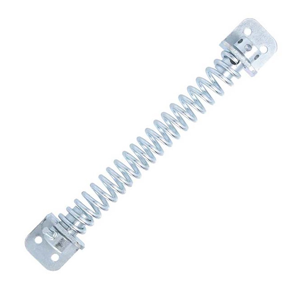 Available in black powder-coated (for aesthetics and rust resistance) or zinc-plated (for corrosion resistance). This gate closure spring is supplied with screws, mounts easily with standard DIY tools, requiring no plumbing of latches or stays.