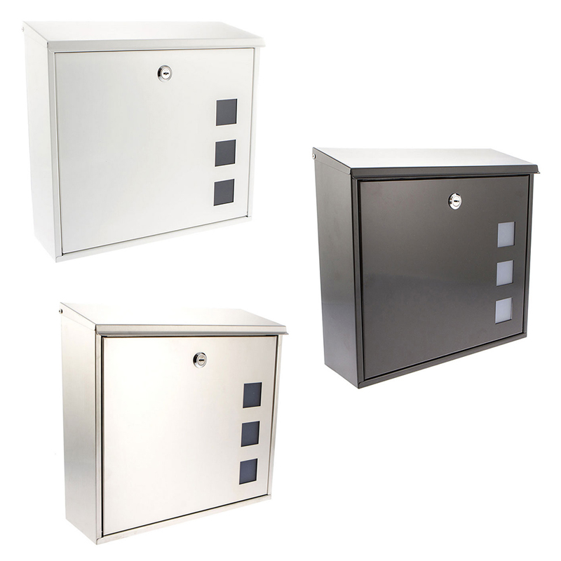This Sterling post box from Burg Wachter is a modern post box with three windows. Features and Benefits Good capacity and accepts up to C4 envelopes Top opening Powder coasted galvanised steel  Weather resistant Secure lock Various colour options available Spe... Read More