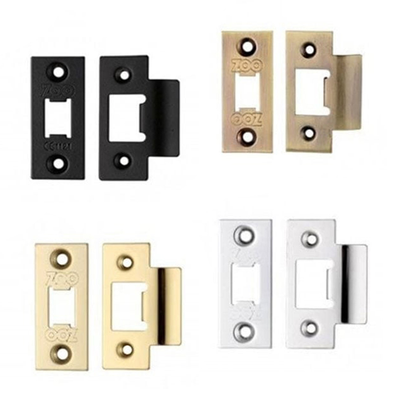 Set of plates (including a spare strike and face plate) for matching tubular latches. Features a cut out groove in the plate aperture cuts down unwanted rattling when paired with compatible tubular latch.
