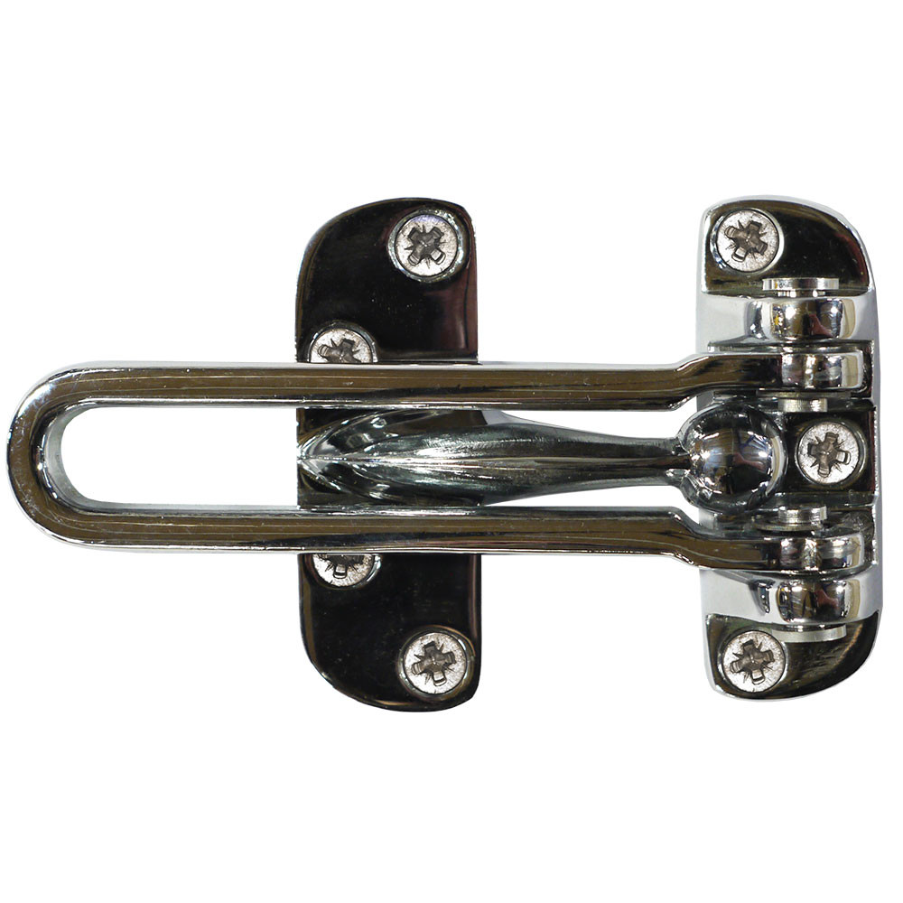 Consisting of two parts, the moving arm and receiving plate, this UAP Chrome Door Restrictor Plate is a way to restrict the opening of doors safely and deter forced entry. Manufactured from zinc, the plate is ideal for those with limited hand movement or arthritis since the only piece you have to deal with is the solid locking bar.